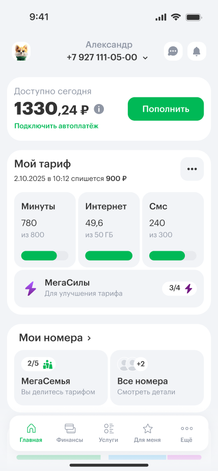 Еву можно подключить в Личном кабинете или приложении «МегаФон»: на главной в блоке «Сервисы». Она доступна для любого тарифа.